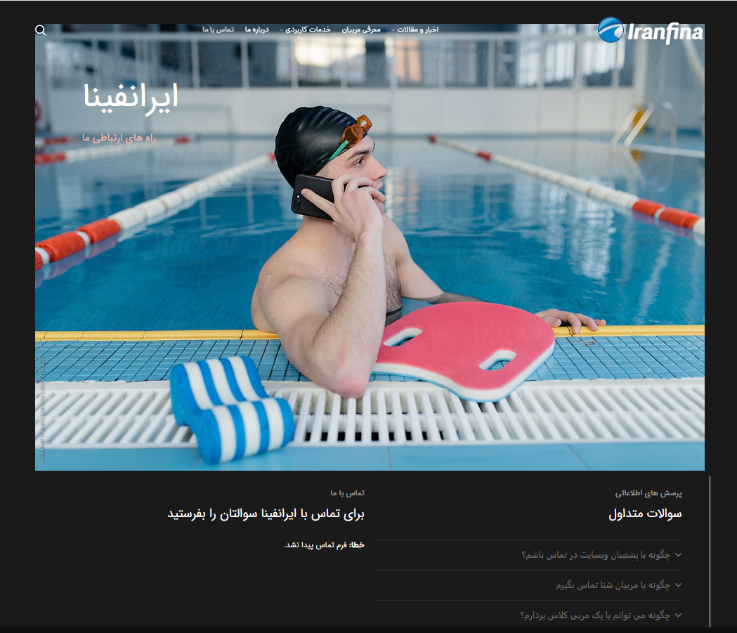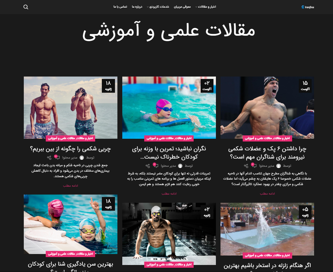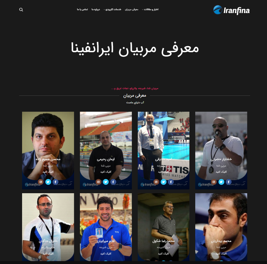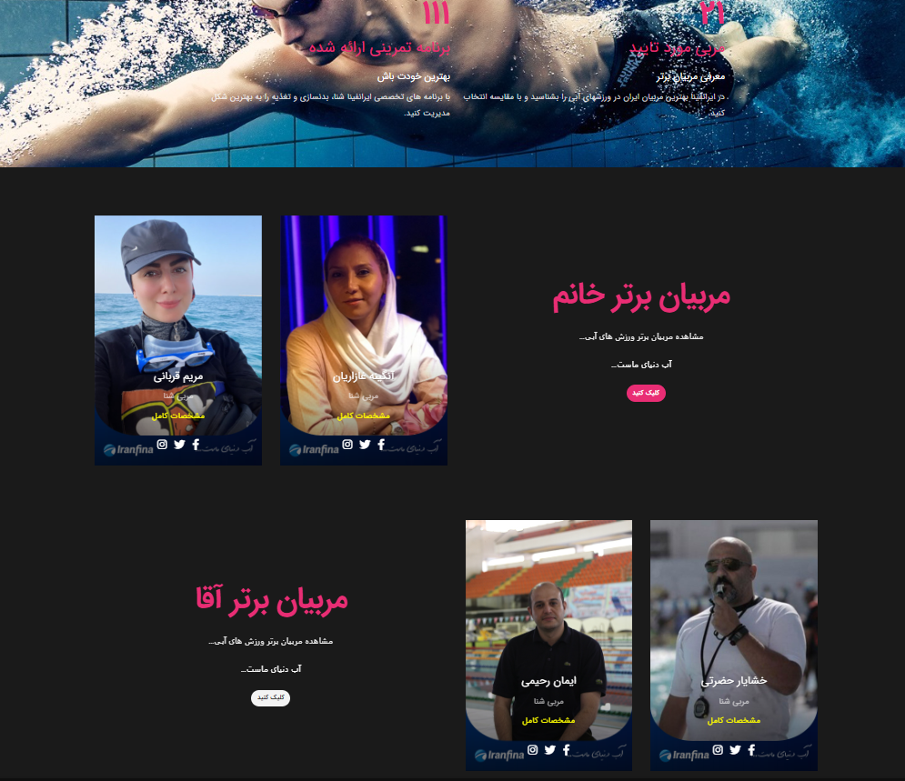 وبسایت طراحی شده برای ورزش های آبی به ویژه برای شناگران و مربیان شناست. این وبسایت وردپرسی که با هدف معرفی خدمات خود و همکاران مرتبط با فعالیت های آبی، کلاسها و رویدادهای شنا و مباحث آموزشی ایجاد شده؛ امکانات مختلفی مانند صفحه مربیان، صفحه همکاران، وبلاگ تخصصی، معرفی خدمات، گالری تصاویر، برنامه های تغذیه ای و … را در خود جای داده است.